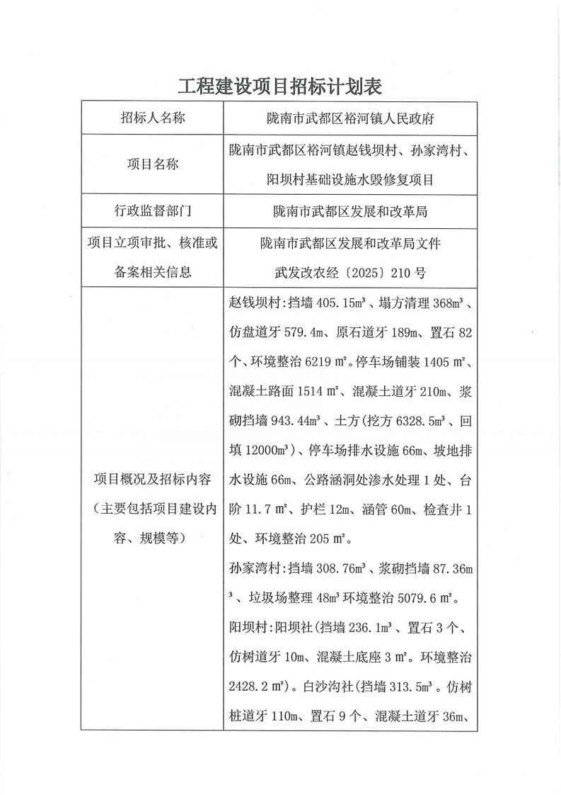 隴南市武都區(qū)裕河鎮(zhèn)趙錢(qián)壩村、孫家灣村、陽(yáng)壩村基礎(chǔ)設(shè)施水毀修復(fù)項(xiàng)目
