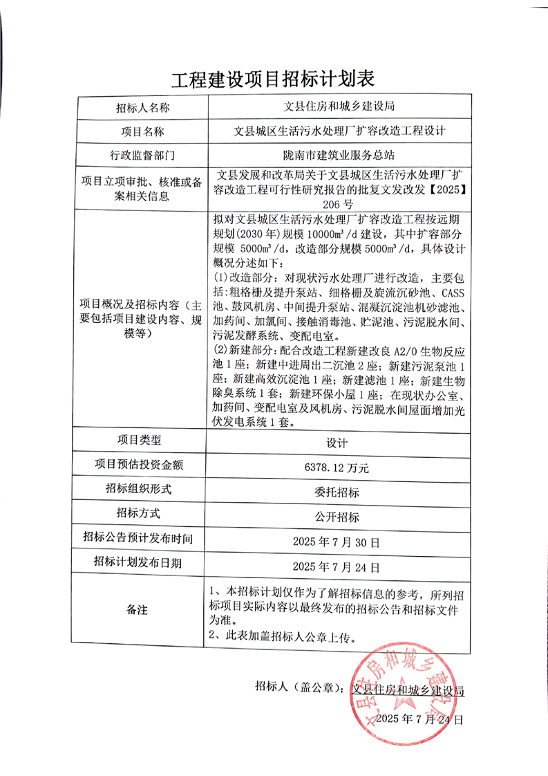 文縣城區(qū)生活污水處理廠擴(kuò)容改造工程設(shè)計