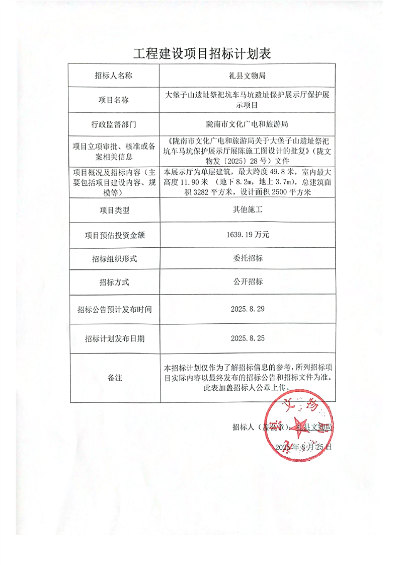 大堡子山遺址祭祀坑車馬坑遺址保護(hù)展示廳保護(hù)展示項(xiàng)目