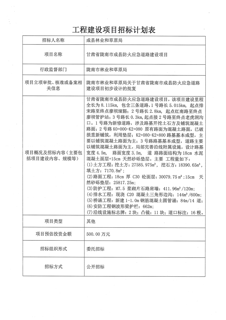 甘肅省隴南市成縣防火應(yīng)急道路建設(shè)項(xiàng)目