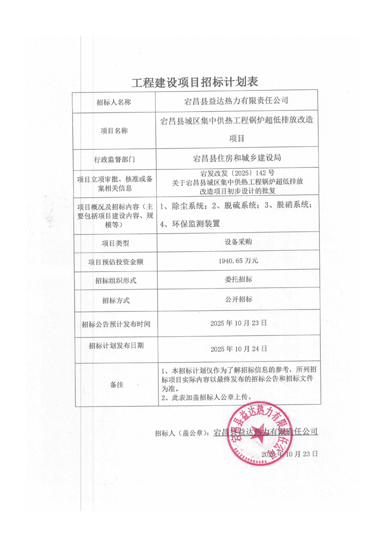 宕昌縣城區(qū)集中供熱工程鍋爐超低排放改造項(xiàng)目