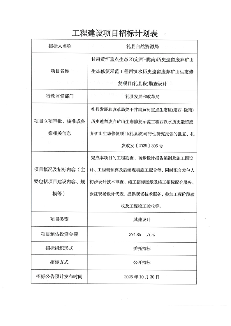 甘肅黃河重點生態(tài)區(qū)(定西-隴南)歷史遺留廢棄礦山生態(tài)修復(fù)示范工程西漢水歷史遺留廢棄礦山生態(tài)修復(fù)項目(禮縣段)勘查設(shè)計
