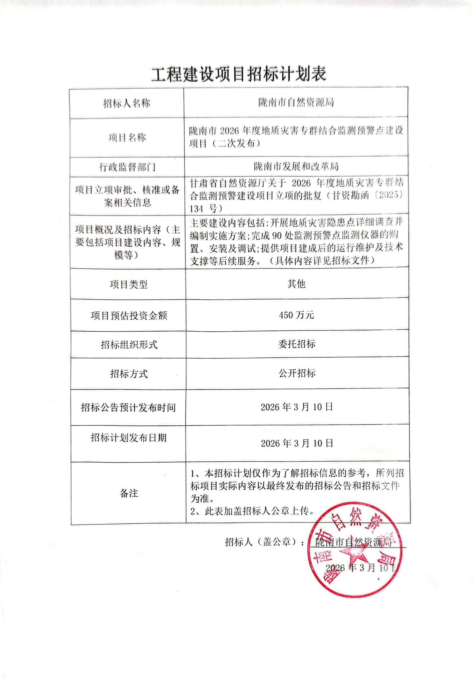 隴南市2026年度地質(zhì)災(zāi)害專群結(jié)合監(jiān)測(cè)預(yù)警點(diǎn)建設(shè)項(xiàng)目(二次發(fā)布)