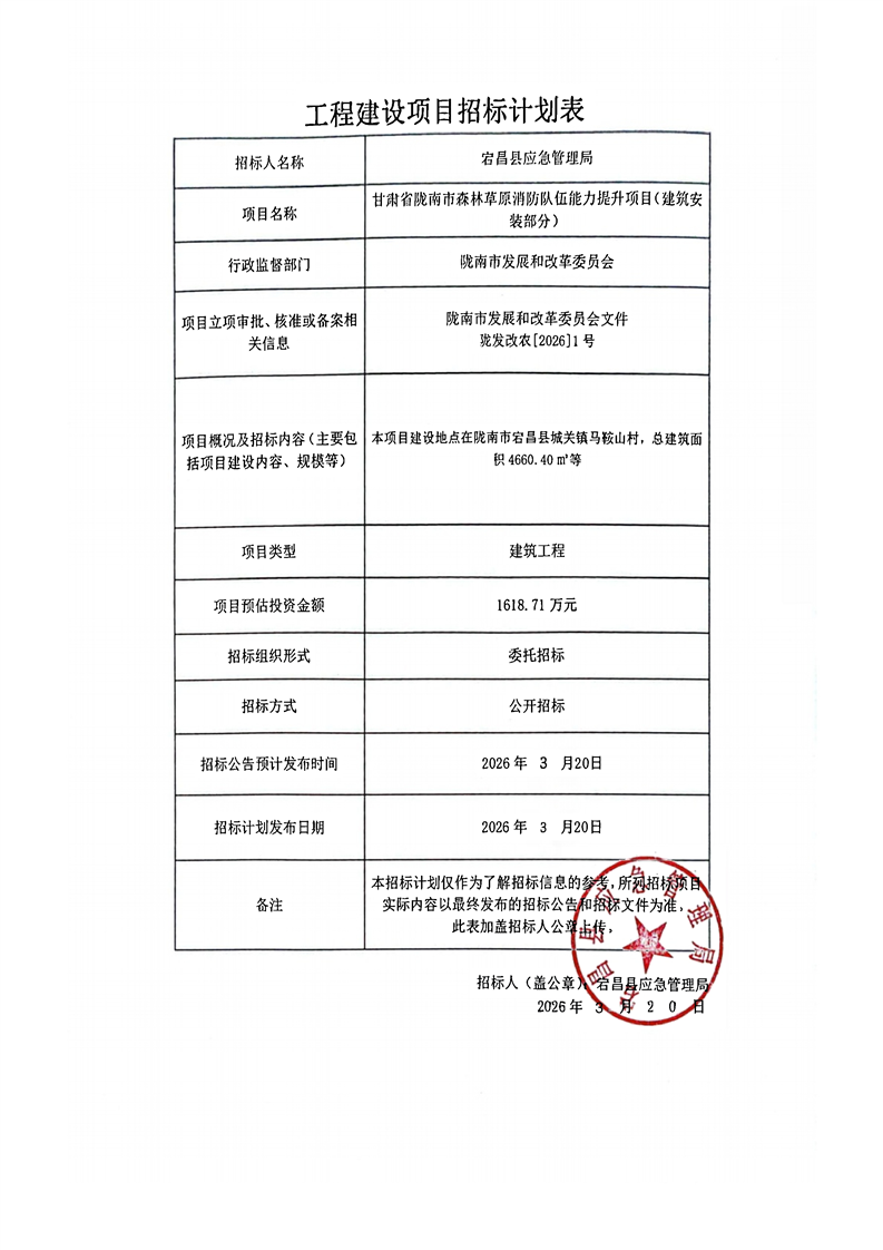 甘肅省隴南市森林草原消防隊伍能力提升項目(土建部分)